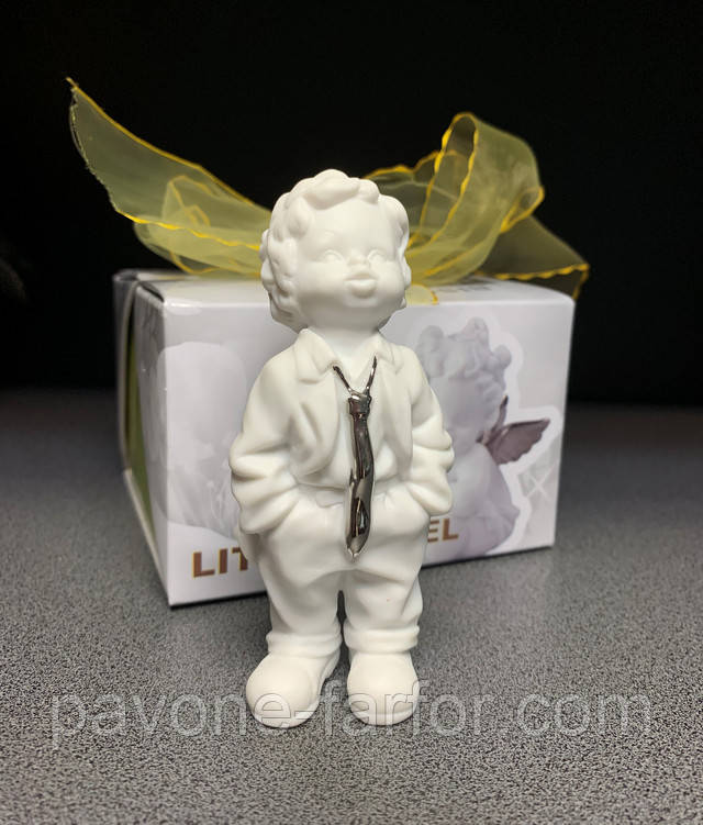 Чарівна порцелянова статуетка хлопчика італійської фірми Pavone, виготовлена зі стильного та пастельного бісквітного фарфору.