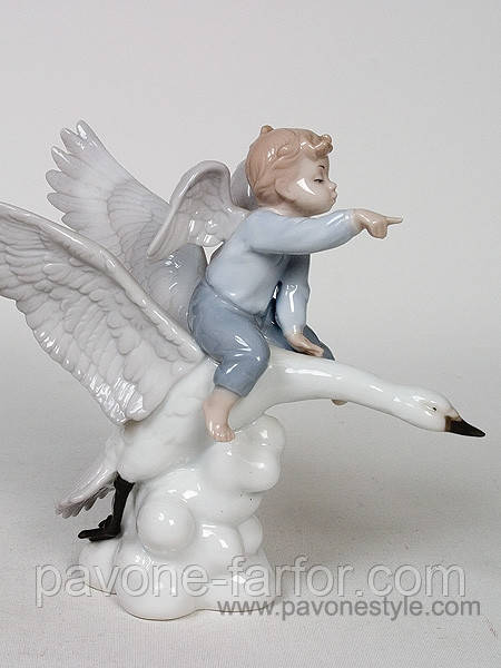 Порцелянова фігурка "Ангел" на лебіді (Pavone) JP-22/2