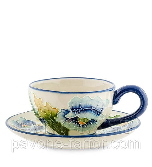 Порцелянова чайна пара "Блакитні маки" (Pavone) BS-243